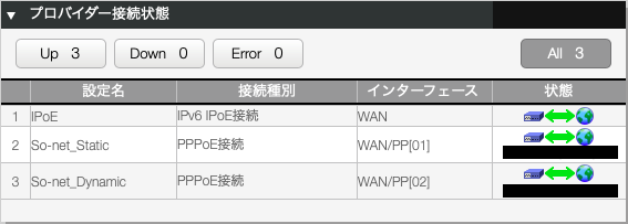 固定IP取得したから動的のPPPoEを持て余してしまいとりあえず接続してるって状態