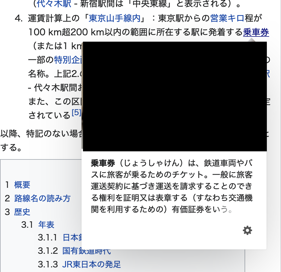 Wikipediaの山手線の記事にある、「乗車券」のリンクにポインタ合わせたらとんでもない画像出てきて吹いた。