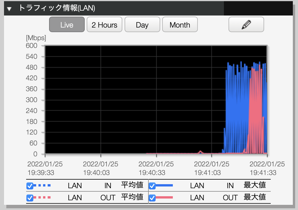 RTX830をファームウェアアップデートしたらネットワークトラフィックのグラフがなんかキモい感じになった。
