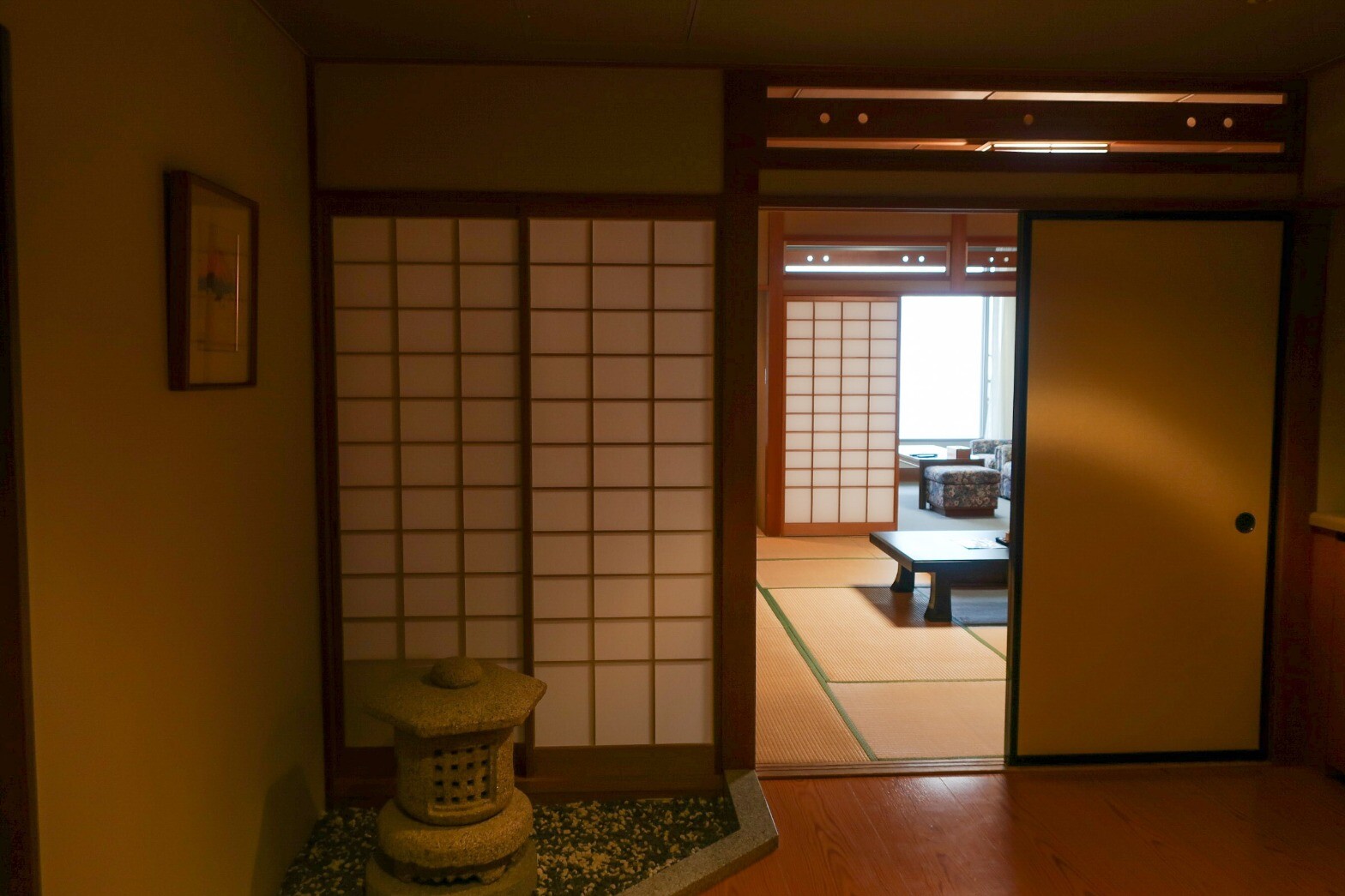 広い部屋のど真ん中にぽつんとふとん敷かれるの落ち着かないな?