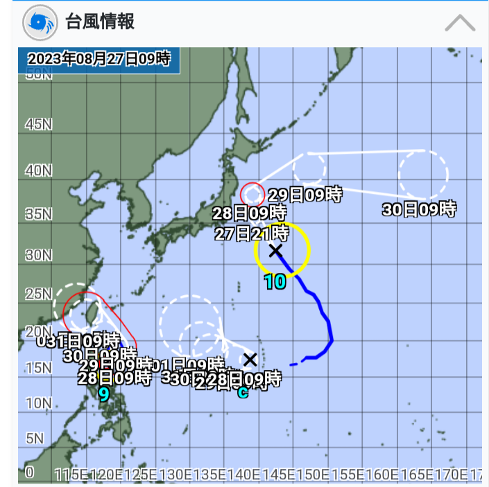 台風情報が混み合ってきてるの晩夏って感じする秋っていうにはまだまだ暑い