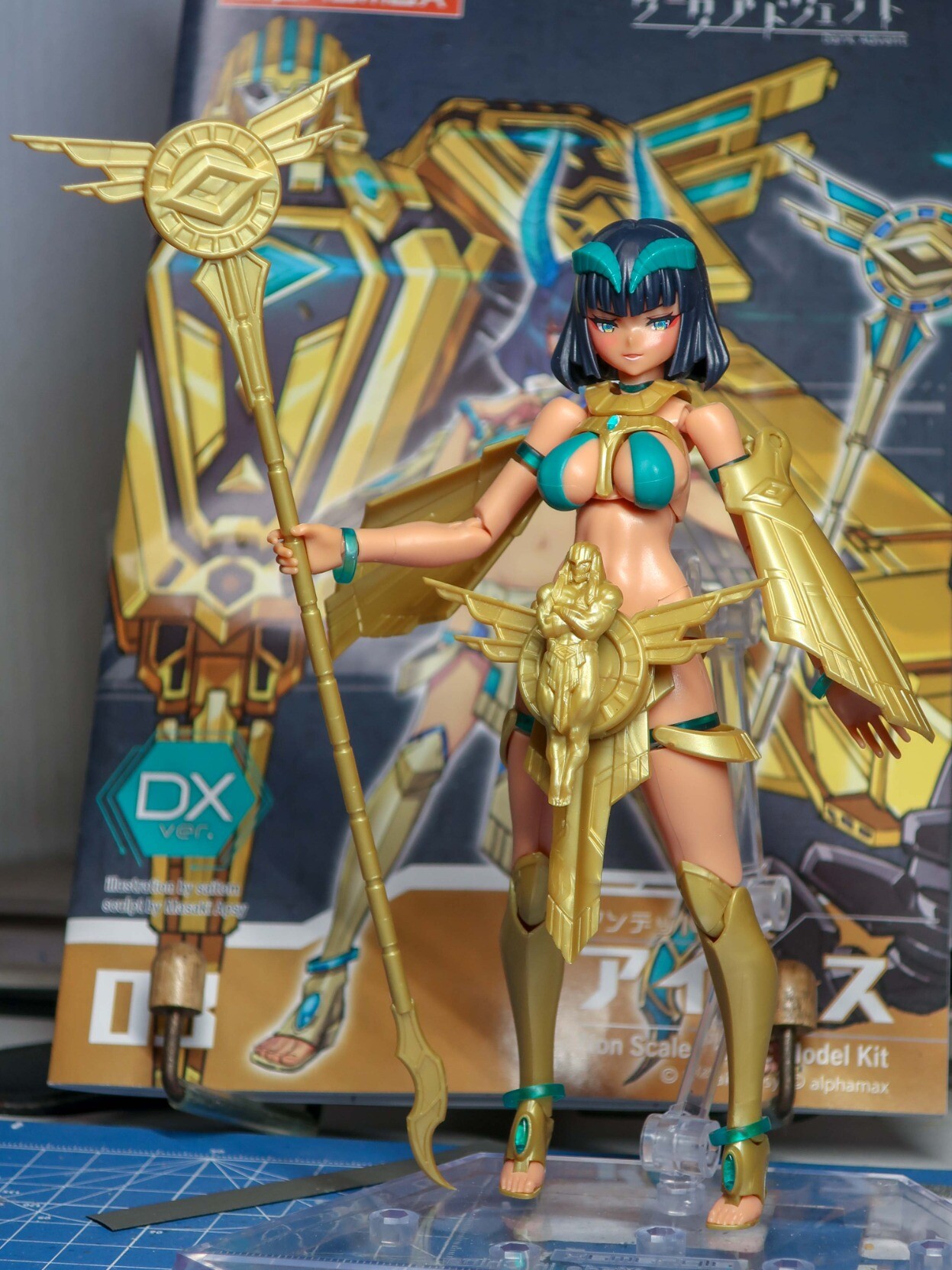 今日の成果DarkAdventアイシスを作り始めました。まずは素体までパチ組み。意外にも関節の硬さが調整いらずでちょうどよく作りやすいですね。今まで以上に肌色部分が多くて後ろ姿はおお……しかし膝から下が金色なんですけど膝上の合わせ目消しどうすればいいんですかこれ。あとDX版なのでアレなパーツも付いてます。