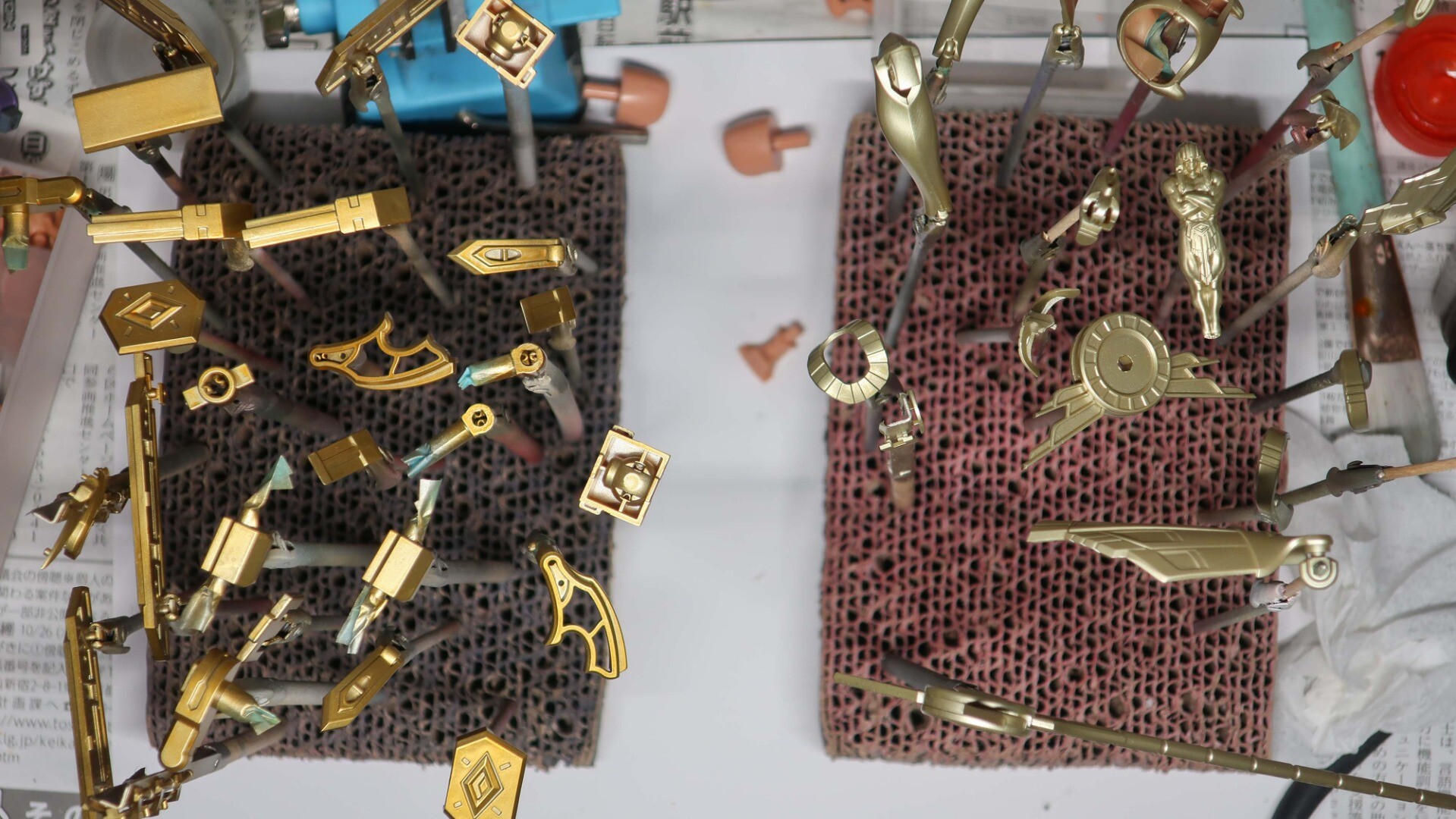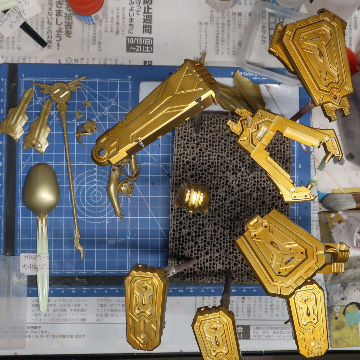 今日の成果アイシスとラヴセス12世の金色部分を一通り塗りました。向かって右がアイシスでホワイトゴールドっぽく、左がラヴセス12世で結構赤っぽいゴールドに。差はしっかり出せたんじゃないでしょうか。塗りが下手クソなのはまあ仕方ないね。あと合わせ目消しもちょっと手をつけ始めました。今日のところはちょっとだけね。