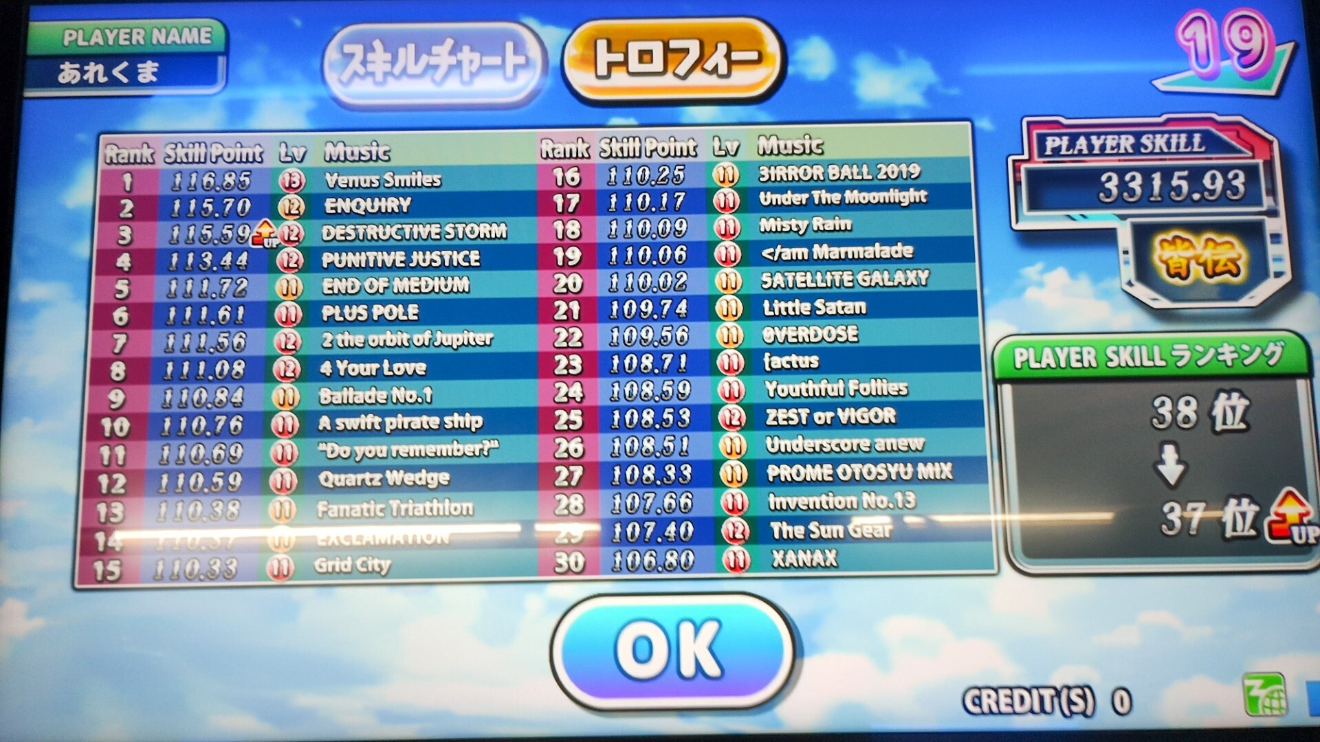 2クレしか遊べなかったけどちょびっと伸びて37位ウェーイ
