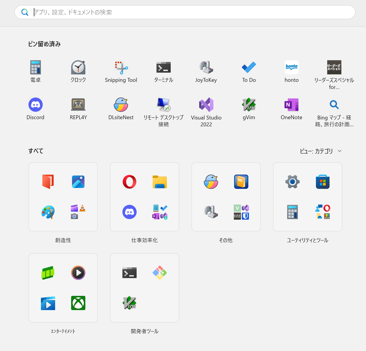 PCの調子が悪いので再起動したらスタートメニューが大幅にかわってびっくりしたすべてのアプリカテゴリ表示は勝手にされた分類が謎だし微妙な感じするけどどうだろね