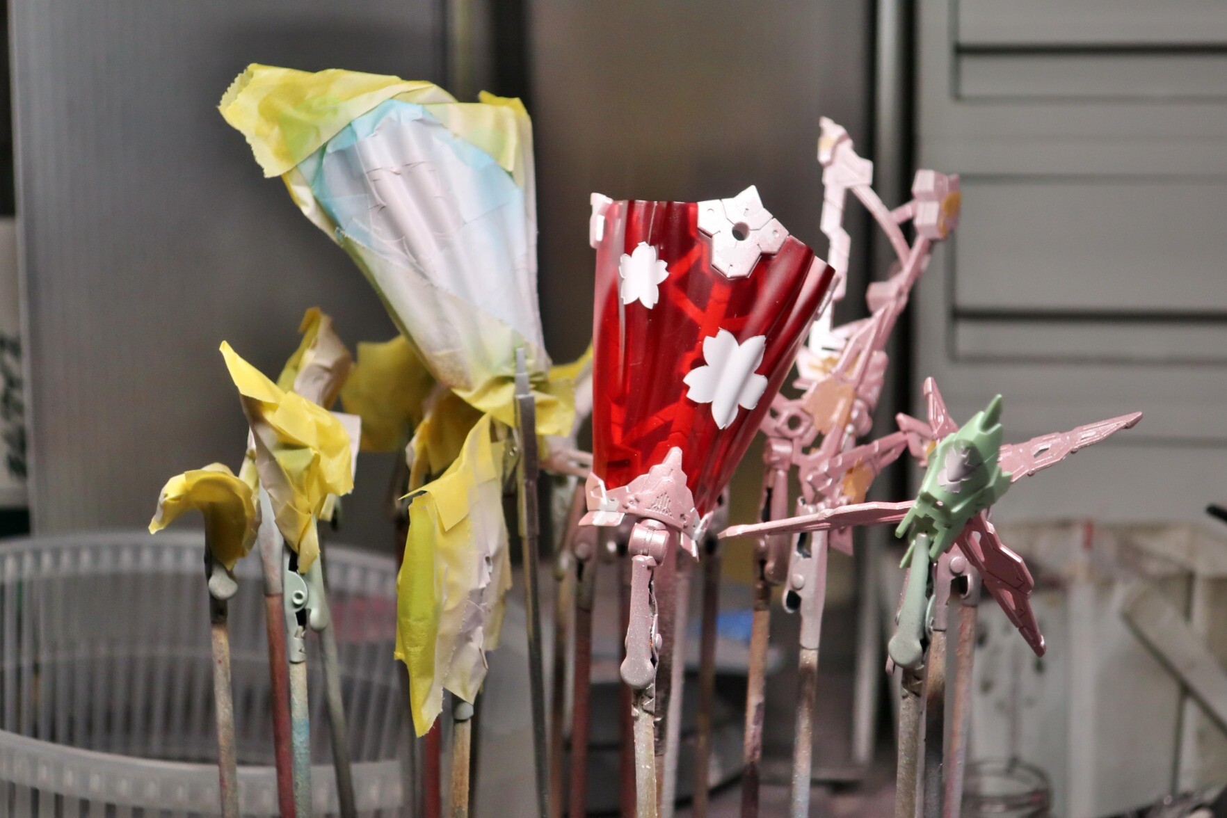 色塗りをしてたんですけども、もともと馬鹿っぽいカラーリングになりそうだなあと思ってたところをノリで適当に柄つけていったら、もはや馬鹿どころか昭和の幼稚園児みたいなデザインになっちゃった