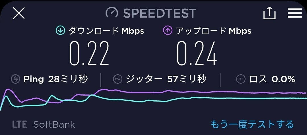 速度規制中のLINEMO。天王洲のビルで夕方に計測してこれ