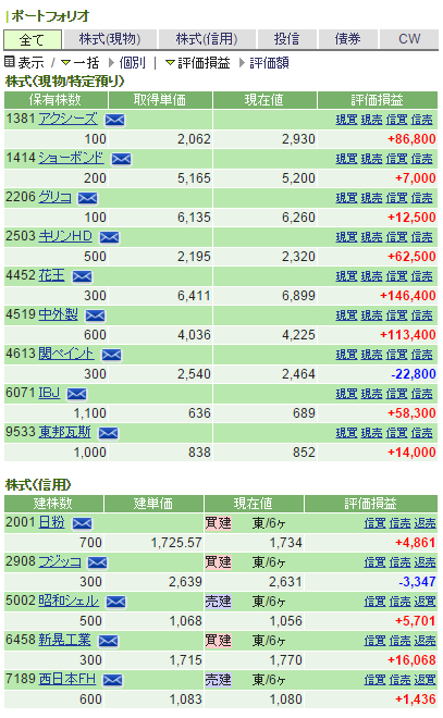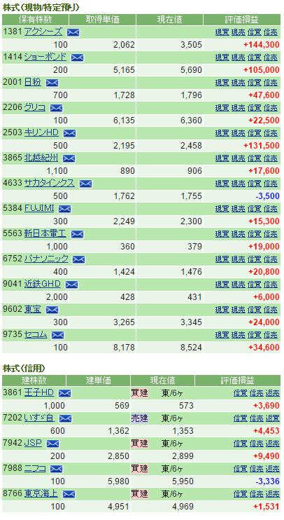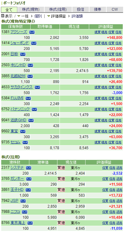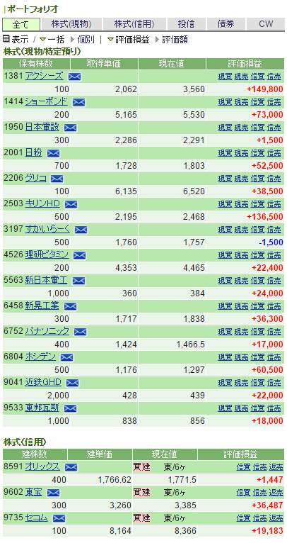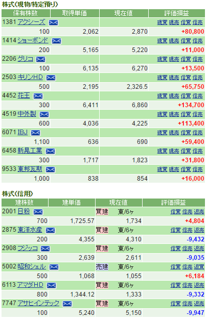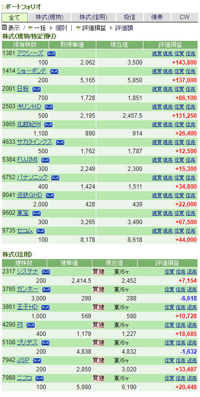下落トレンド入りしそうな雰囲気あるし、買いポジはこれくらいで多分限界なので、空売りする銘柄を探していきたい。