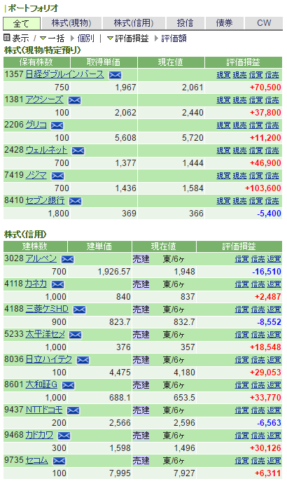 今日はノートレだったので持ち株に変化無し。空売りしてる株が多いので日経が上がって損失が出ると思ったけど、買った株が思った以上に上がって損失をカバーしてくれた #株 https://7144.party/media/9kLkLij8TkxIDFoDFd0