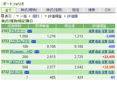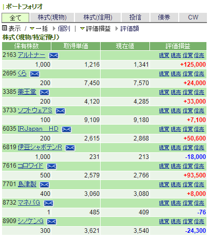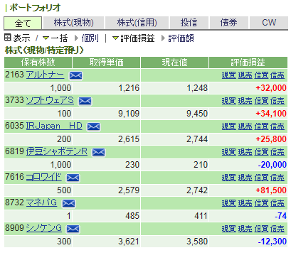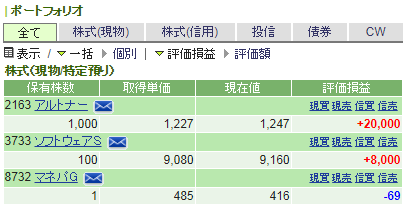 寄付で全部売ったけど後場で思い直して、アルトナーとソフトウェアSが強かったので買い戻した。