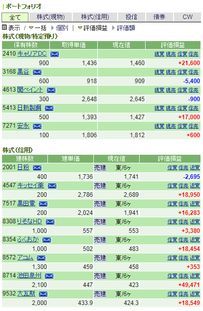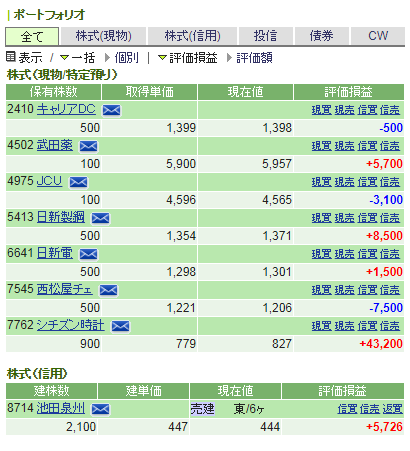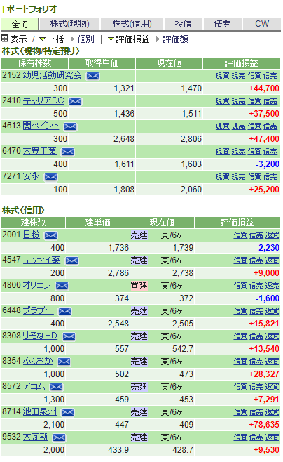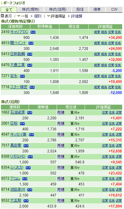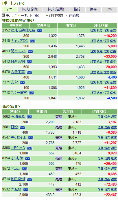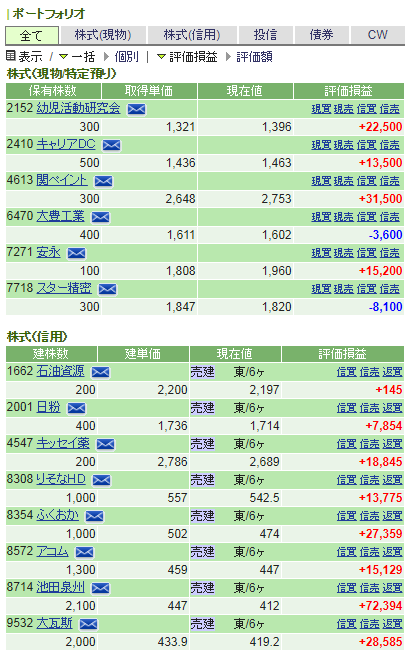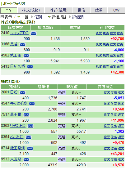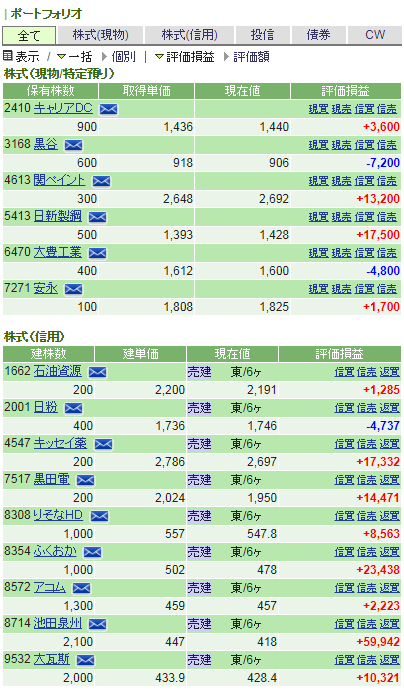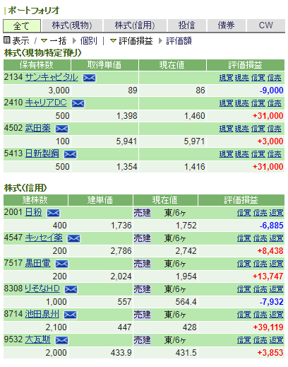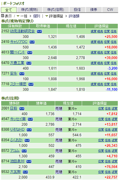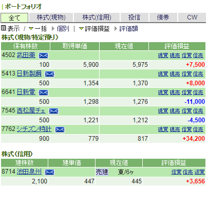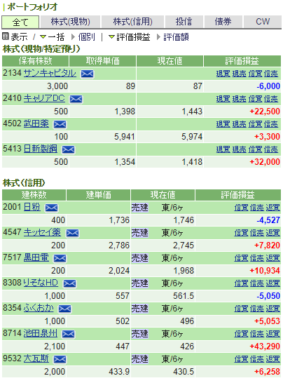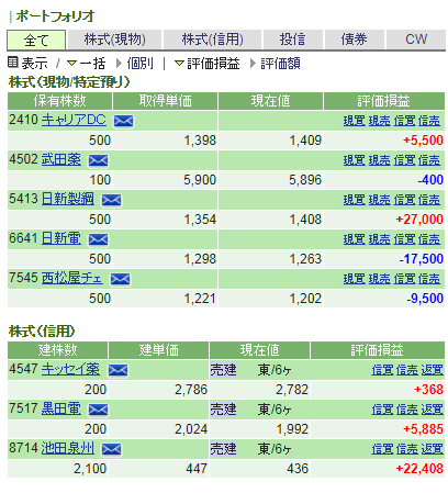 日新製鋼は何となく買い増した……まあ駄目でもそれほど損する訳でもないし。