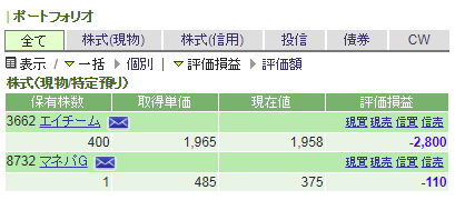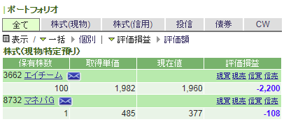 エイチームで損し続けた上にまた買い直して含み損になった。