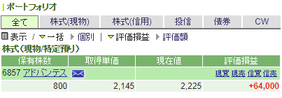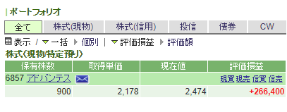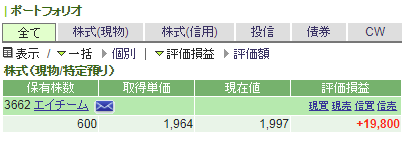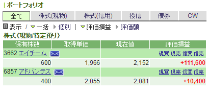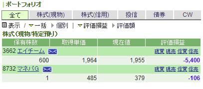エイチームの買い増し分損切りして、上がったからまた買い戻したけど量が減った。