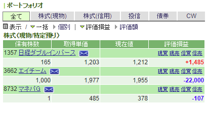 エイチームを買い増したのと、ダブルインバを少しだけ買ってみた。